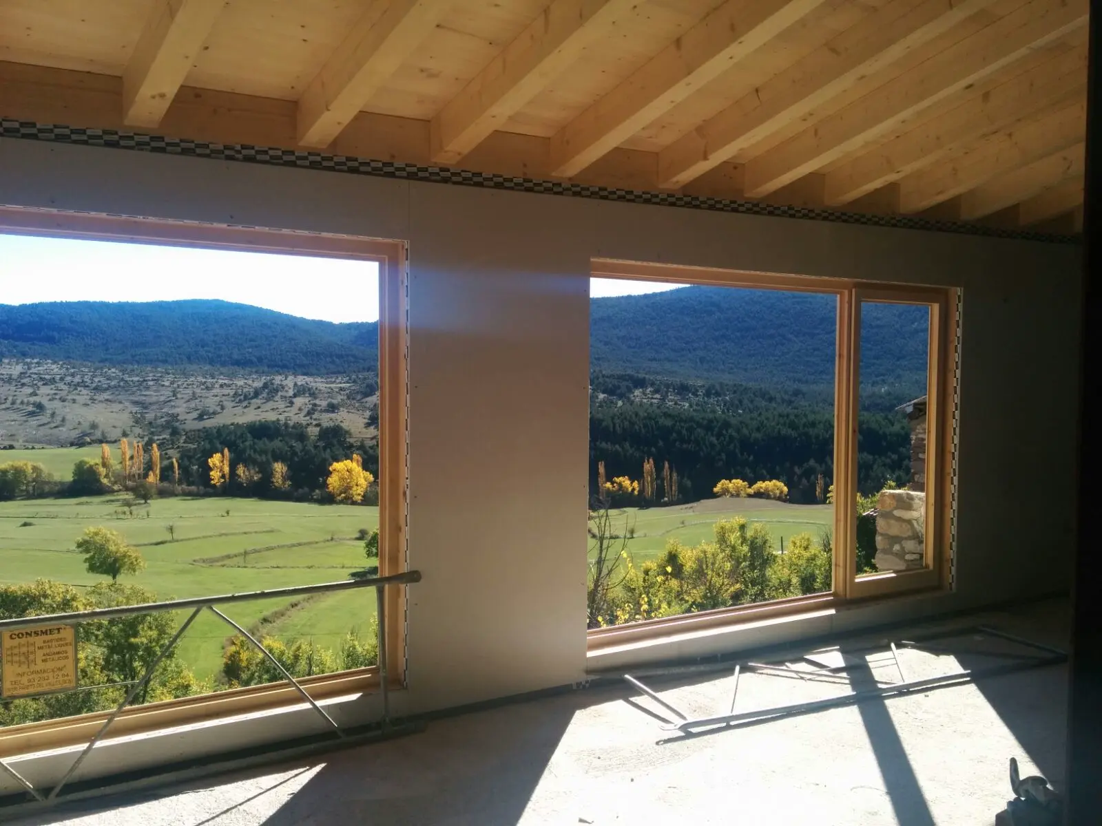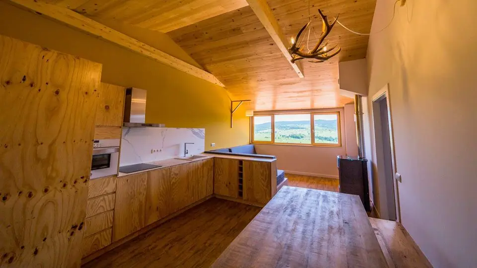 La casa està orientada al sud per aprofitar la llum solar, i disposa d’amplis finestrals que permeten que entri la radiació solar. També té circuits de ventilació amb recuperació de calor que aprofiten l’aire calent interior, i un bon aïllant tèrmic, en aquest cas fibra de fusta de 18 cm a les parets i 25 cm al sostre. Gràcies a aquestes característiques tècniques, Cal Rossa no és només una construcció eficient en fusta; és una obra mestra de la sostenibilitat. En comparació amb un edifici convencional, aquest disseny de fusta eficient estalvia prop del 90% d’energia.