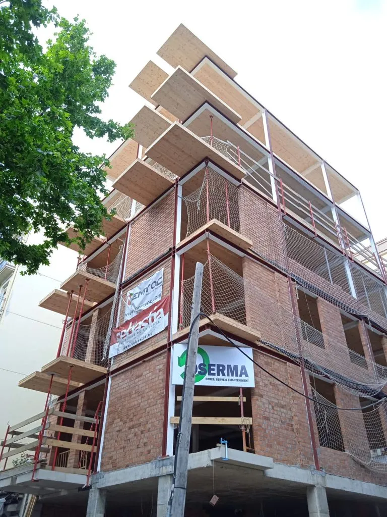 El edificio está construido con una estructura metálica y forjados (CLT), un material que ofrece una gran resistencia y durabilidad. La madera es un material sostenible y reciclable, que contribuye a la reducción de la huella de carbono.